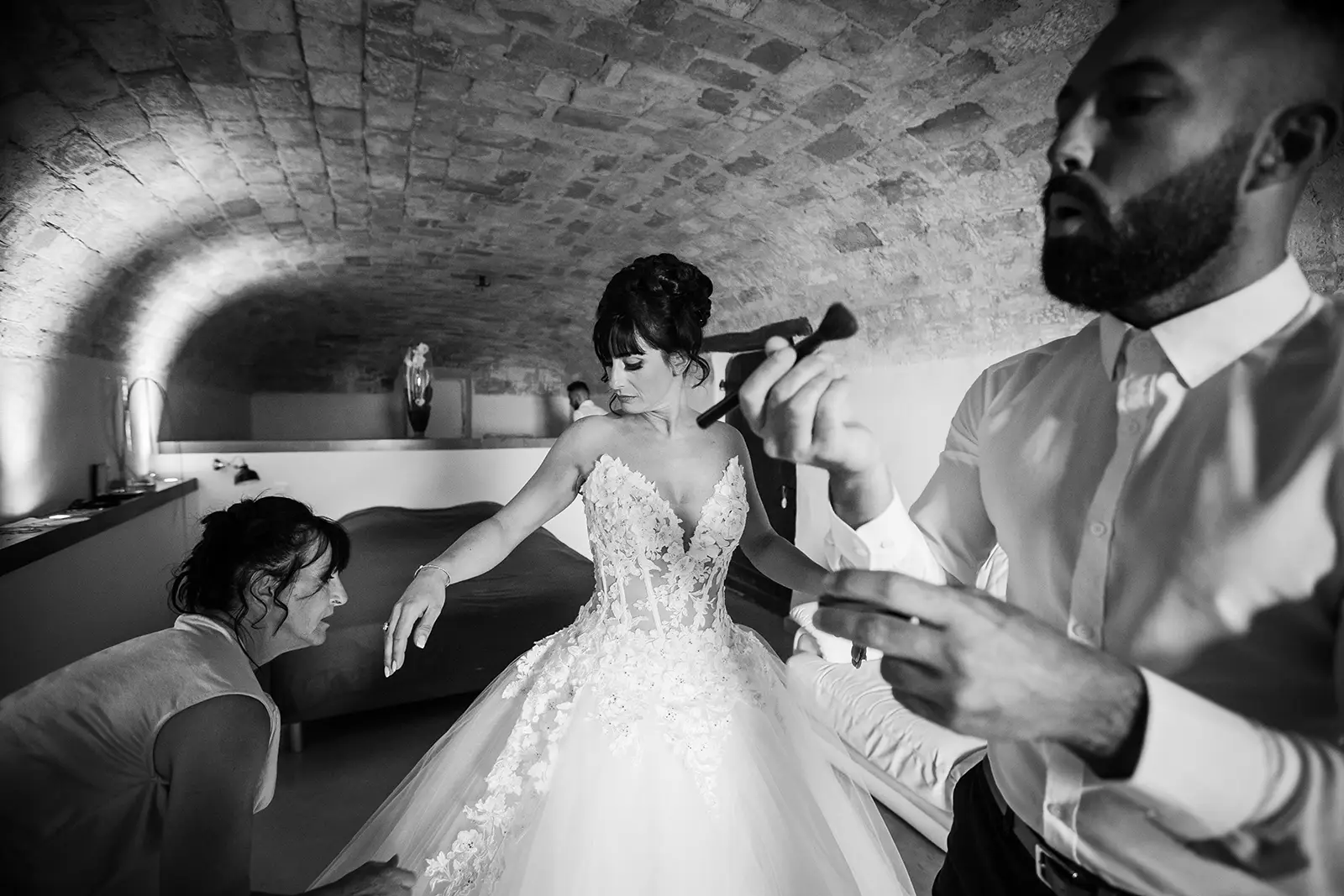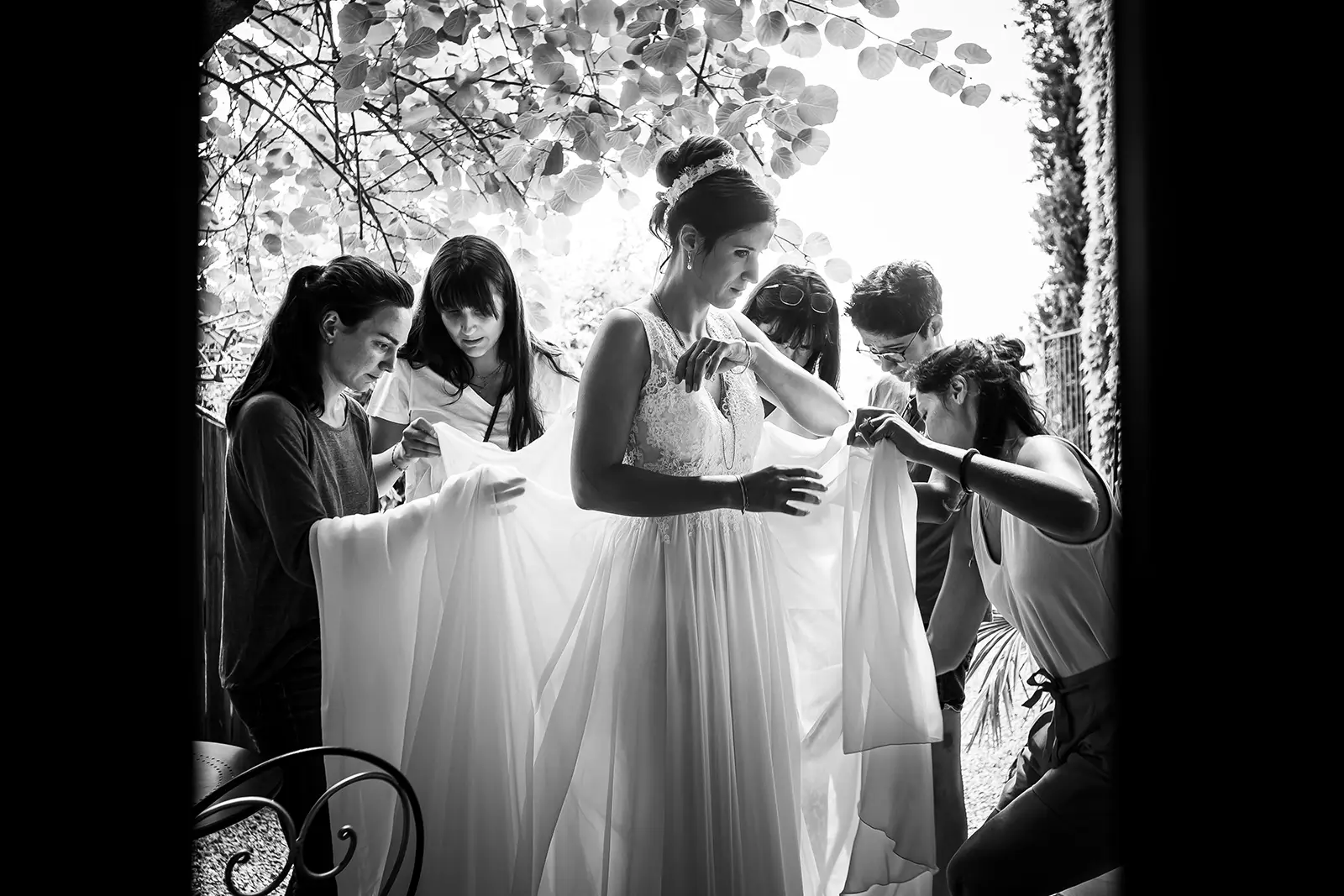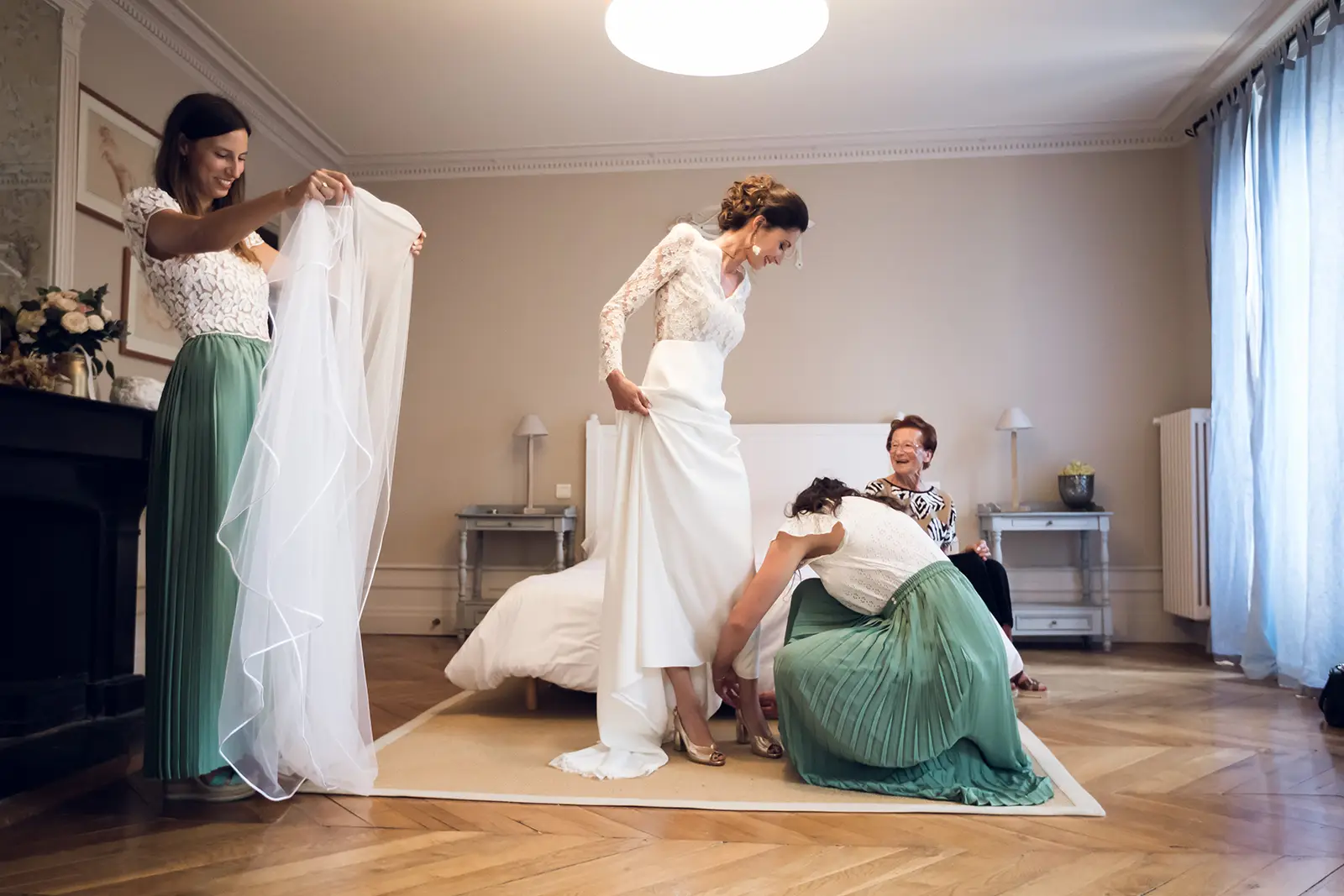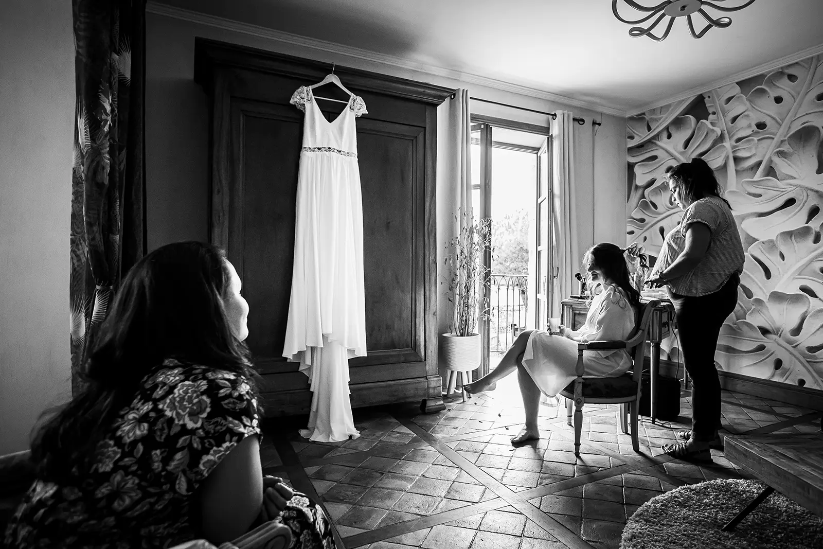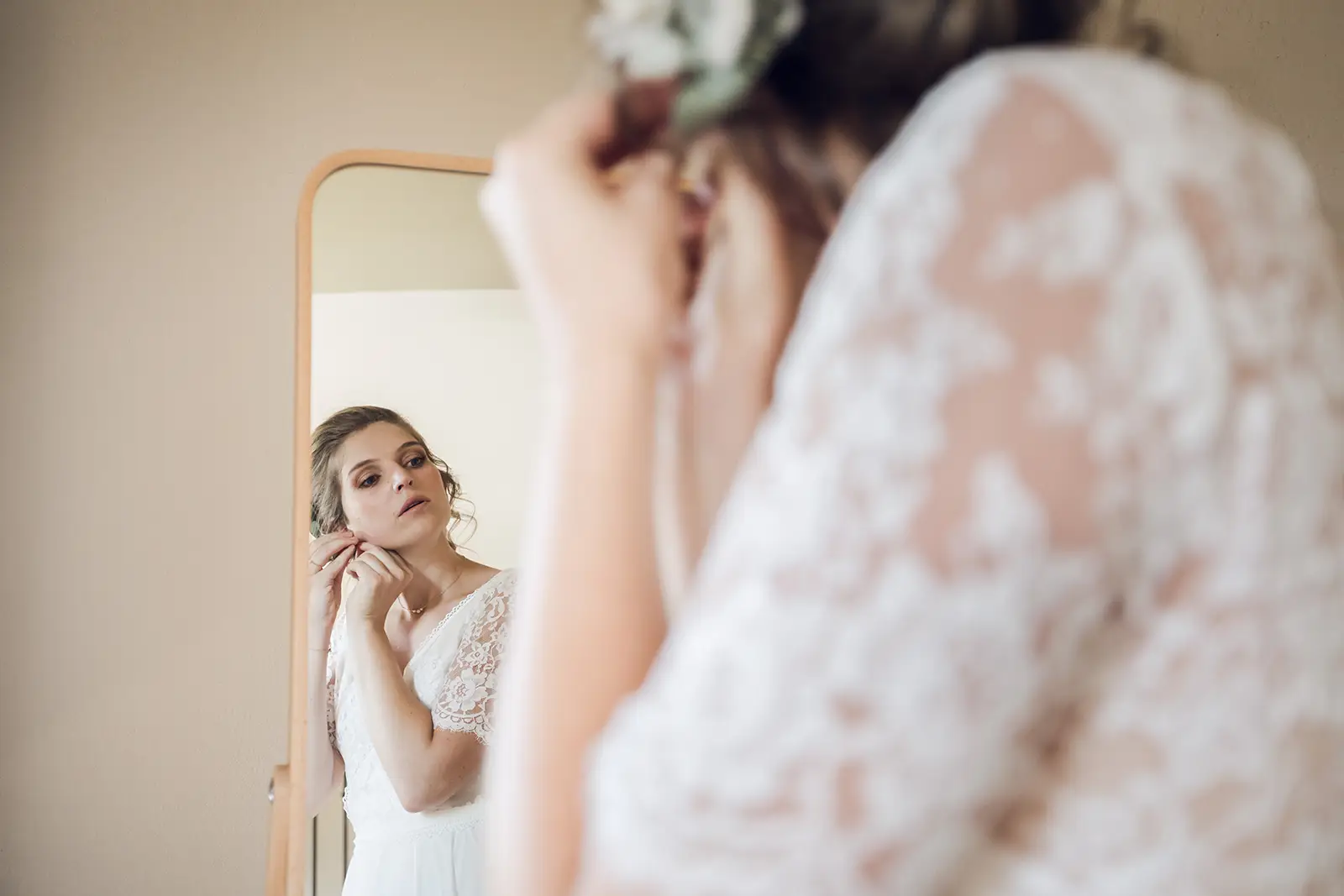 Pendant les préparatifs, je commence par repérer les personnes qui sont importantes pour vous. Ce moment en intimité me permet de m’intégrer auprès de vos invités. En toute discrétion, je photographierai votre session maquillage, coiffure, habillage, fin d’installation par exemple. Je commence aussi à photographier vos proches.