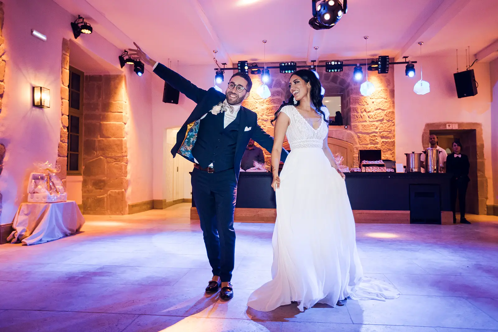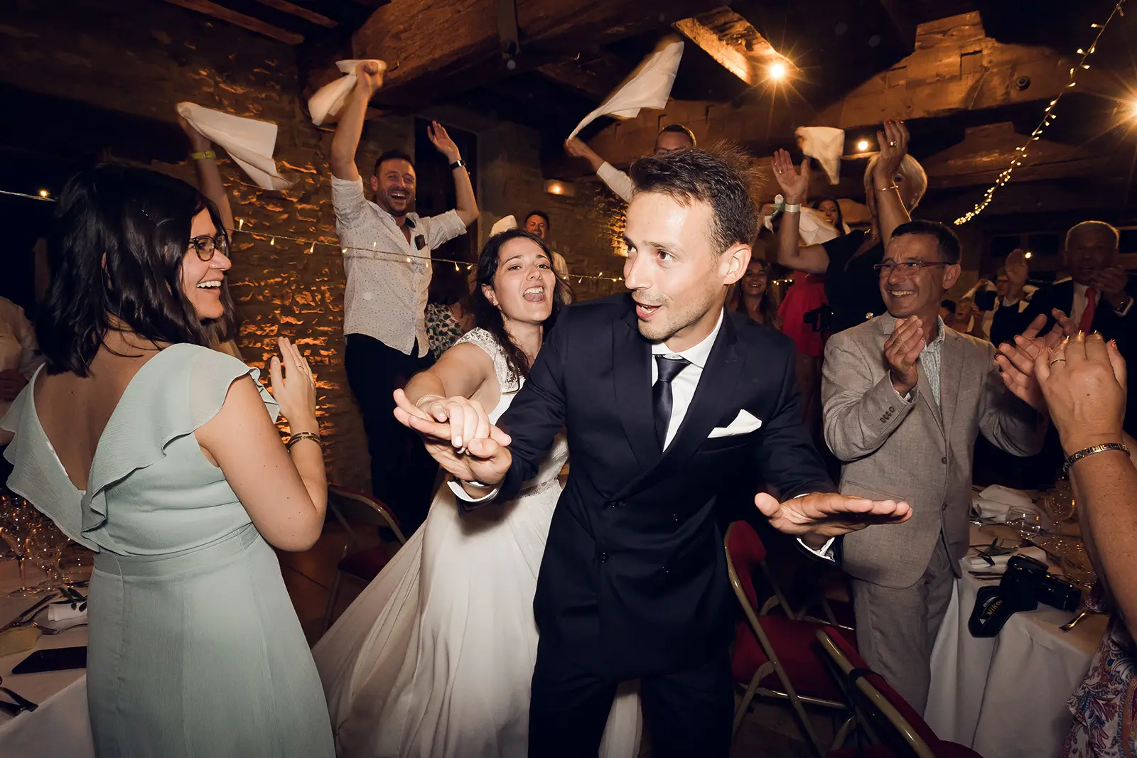 La fête bat son plein : discours, animations, champagne et ambiance survoltée sur le dancefloor ! Autant de moments intenses à capturer. Oubliez l’appareil photo, soyez vous-mêmes et laissez-vous porter par l’énergie de la soirée ! J’ai l’habitude des nuits endiablées, alors appareil photo dans une main, flash dans l’autre, je veux vous voir danser, chanter, rire et profiter. Alors, on danse ?
