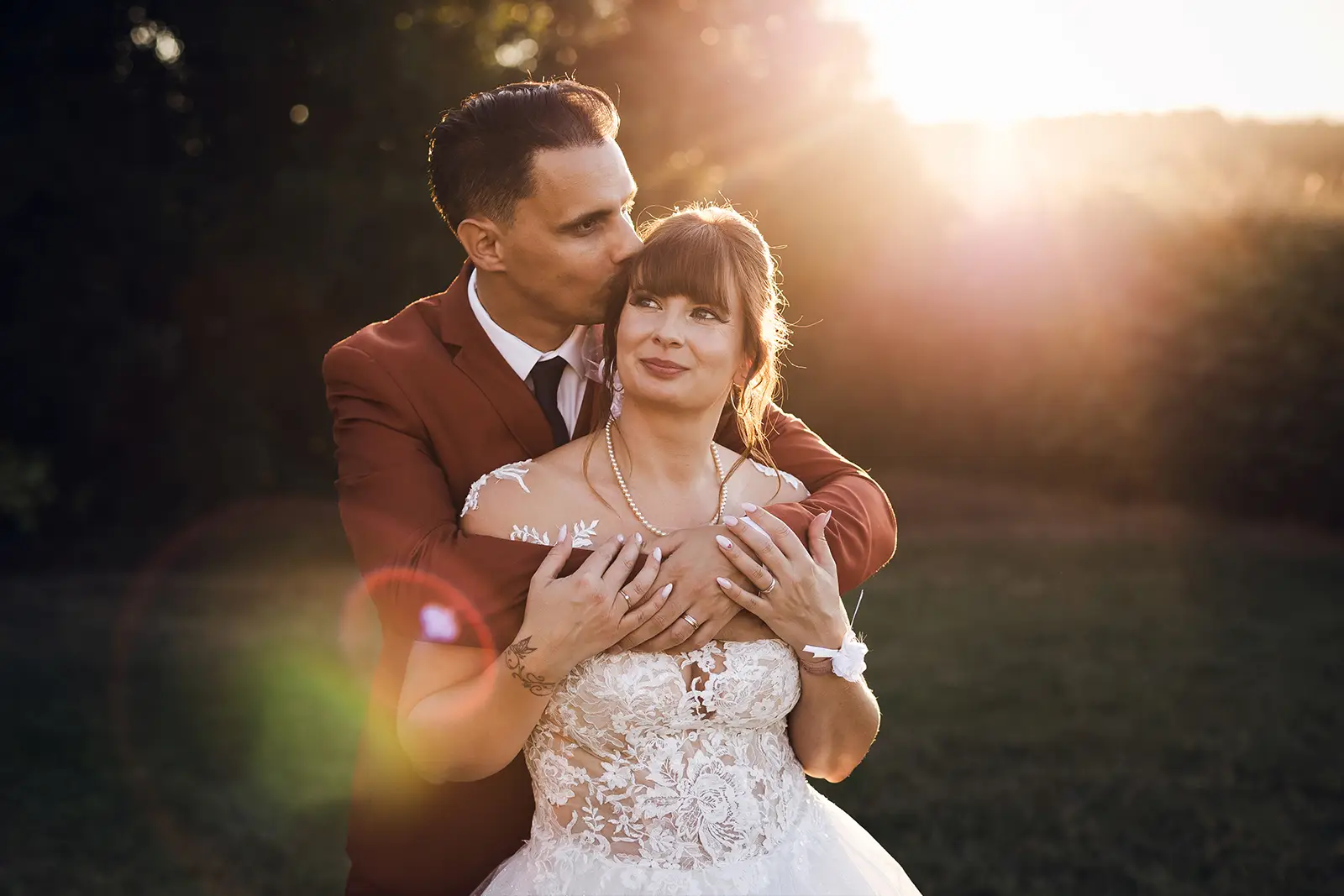J’adore les couchers de soleil ! C’est la lumière pour vos photos en amoureux. C’est pourquoi je conseille de faire vos photos en fin de journée. D’une part, la lumière est plus douce et d’autre part, vous serez plus détendus une fois le rush de la journée passé. La séance dure environ 30 min afin de ne pas faire attendre vos invités trop longtemps. De cette manière, vous pourrez vous aussi profiter de votre cocktail ! Si le soleil se cache, j’ai plein d’alternatives à vous proposer !